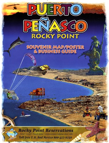 Puerto Peñasco * Rocky Point Souvenir Map / Poster & Business Guide features an attractive cartoon map of Puerto Peñasco's streets and businesses on the obverse. Each business has its own illustration and contact information right on the map. The map also features information for using telephones and cellular phones in Mexico, plus emergency phone and marine radio numbers.